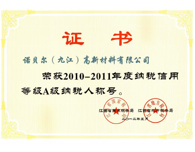 榮獲“2010-2011年度納稅信用等級A級納稅人”榮譽(yù)