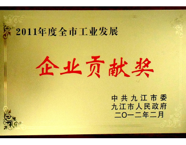 中共九江市委、九江市人民政府聯(lián)合授予“2011年度全市工業(yè)發(fā)展企業(yè)貢獻獎”