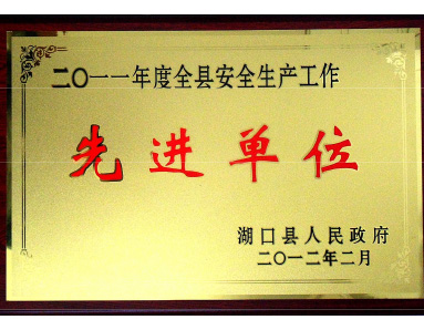 湖口縣人民政府授予“2011年度全縣安全生產(chǎn)工作先進(jìn)單位”榮譽(yù)