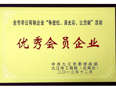中共九江市委統戰部、九江市工商聯(lián)(總商會(huì ))聯(lián)合授予“優(yōu)秀會(huì )員企業(yè)”榮譽(yù)