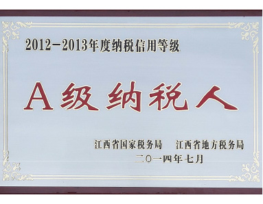 榮獲“2012-2013年度納稅信用等級A級納稅人”榮譽(yù)
