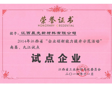 江西省工業(yè)和信息化委員會(huì )授予“創(chuàng )新能力提升示范活動(dòng)試點(diǎn)企業(yè)”榮譽(yù)