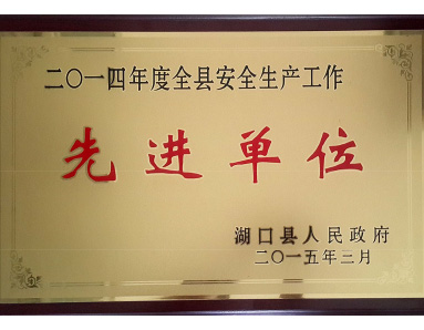 湖口縣人民政府授予“2014年度全縣安全生產(chǎn)工作先進(jìn)單位”榮譽(yù)
