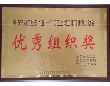湖口縣總工會(huì )、湖口縣體育局聯(lián)合授予“2015年湖口縣慶五一第三屆職工體育健身運動(dòng)會(huì )優(yōu)秀組織獎”榮譽(yù)