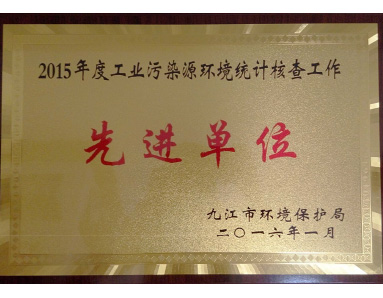 九江市環(huán)境保護局授予“2015年度工業(yè)污染源環(huán)境統計核查工作先進(jìn)單位”榮譽(yù)
