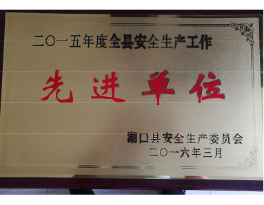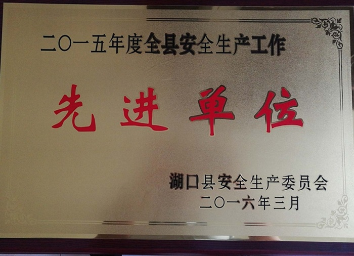 湖口縣安全生產(chǎn)委員會(huì )授予“2015年度全縣安全生產(chǎn)工作先進(jìn)單位”榮譽(yù)