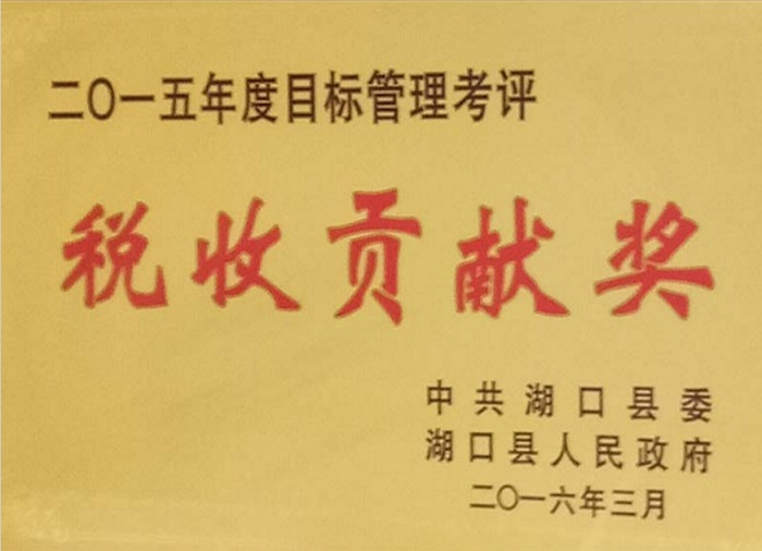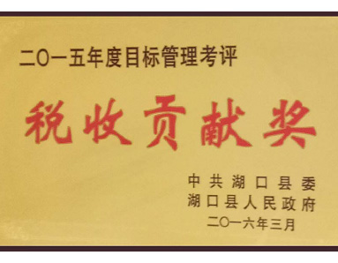 中共湖口縣委、湖口縣人民政府聯(lián)合授予“2015年度目標管理考評稅收貢獻獎”榮譽(yù)
