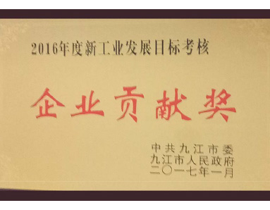 中共九江市委、九江市人民政府聯(lián)合授予“2016年度新工業(yè)發(fā)展目標考核企業(yè)貢獻獎”榮譽(yù)