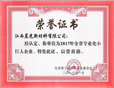 江西省工業(yè)和信息化委員會(huì )授予“2017年江西省專(zhuān)業(yè)化小巨人企業(yè)”榮譽(yù)