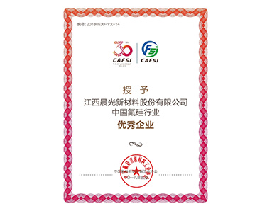 中國硅氟有機材料工業(yè)協(xié)會(huì )授予“中國硅氟行業(yè)優(yōu)秀企業(yè)”榮譽(yù)