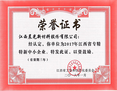 江西省工業(yè)和信息化委員會(huì )授予“2017年江西省專(zhuān)精特新中小企業(yè)”榮譽(yù)