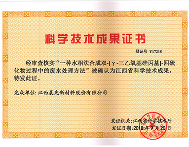 “一種水相法合成雙-[γ-三乙氧基硅丙基]-四硫化物過(guò)程中的廢水處理方法”被江西省科學(xué)技術(shù)廳授予“江西省科學(xué)技術(shù)成果”榮譽(yù)