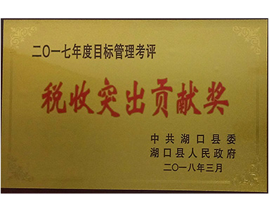 中共湖口縣委、湖口縣人民政府聯(lián)合授予“2017年度目標管理考評稅收突出貢獻獎”榮譽(yù)