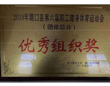 湖口縣總工會(huì )、湖口縣體育局聯(lián)合授予“2018年第六屆湖口縣職工健身體育運動(dòng)會(huì )優(yōu)秀組織獎”榮譽(yù)