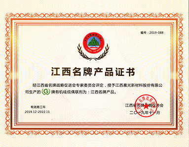 江西名牌產(chǎn)品證書(shū)(氨基硅烷)-江西省品牌戰略促進(jìn)會(huì )