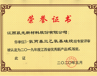 3-氨丙基三乙氧基硅烷產(chǎn)品被江西省工業(yè)信息化廳授予“江西省2019年新產(chǎn)品二等獎”榮譽(yù)