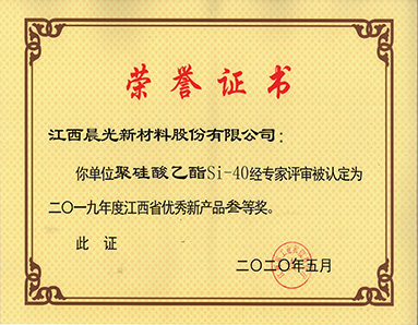 聚硅酸乙酯Si-40產(chǎn)品被江西省工業(yè)信息化廳授予“江西省2019年新產(chǎn)品三等獎”榮譽(yù)
