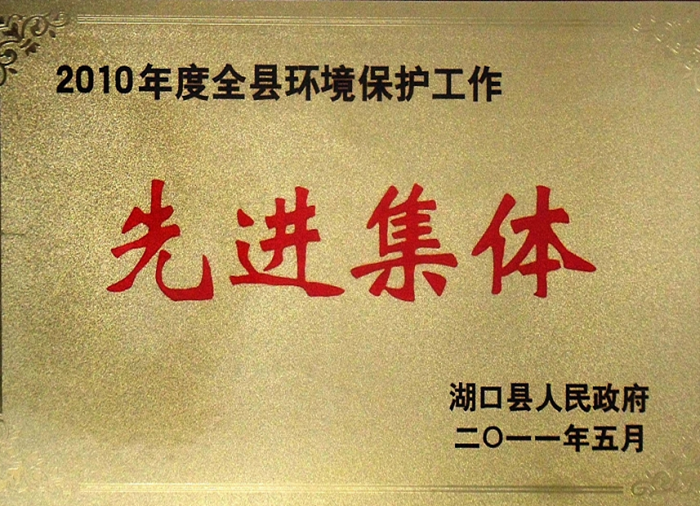 湖口縣人民政府授予“2010年度全縣環(huán)境保護工作先進(jìn)集體”榮譽(yù)